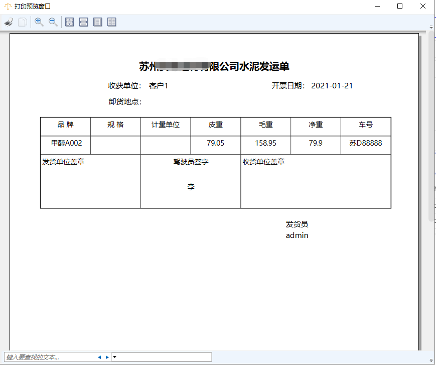 支持磅單打印稱重記錄中的基本信息字段。