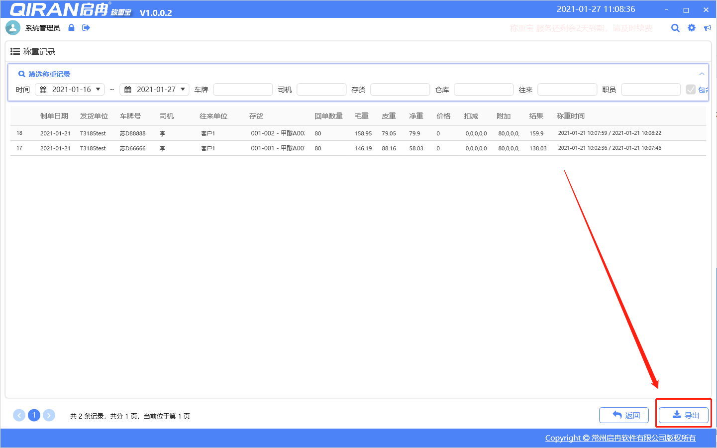 支持稱重記錄查詢及導出