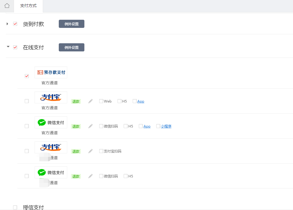 后臺設置支付方式