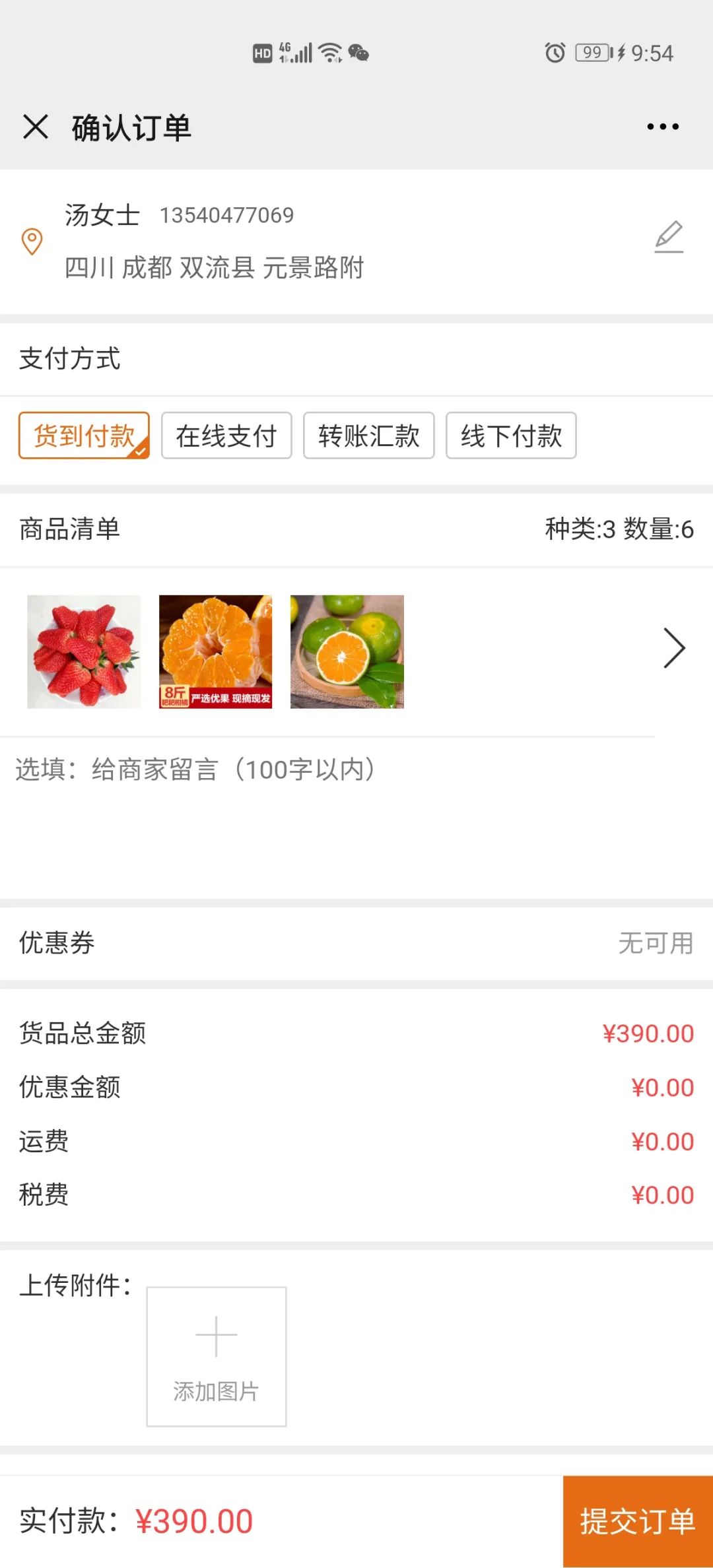 前端客戶下單效果