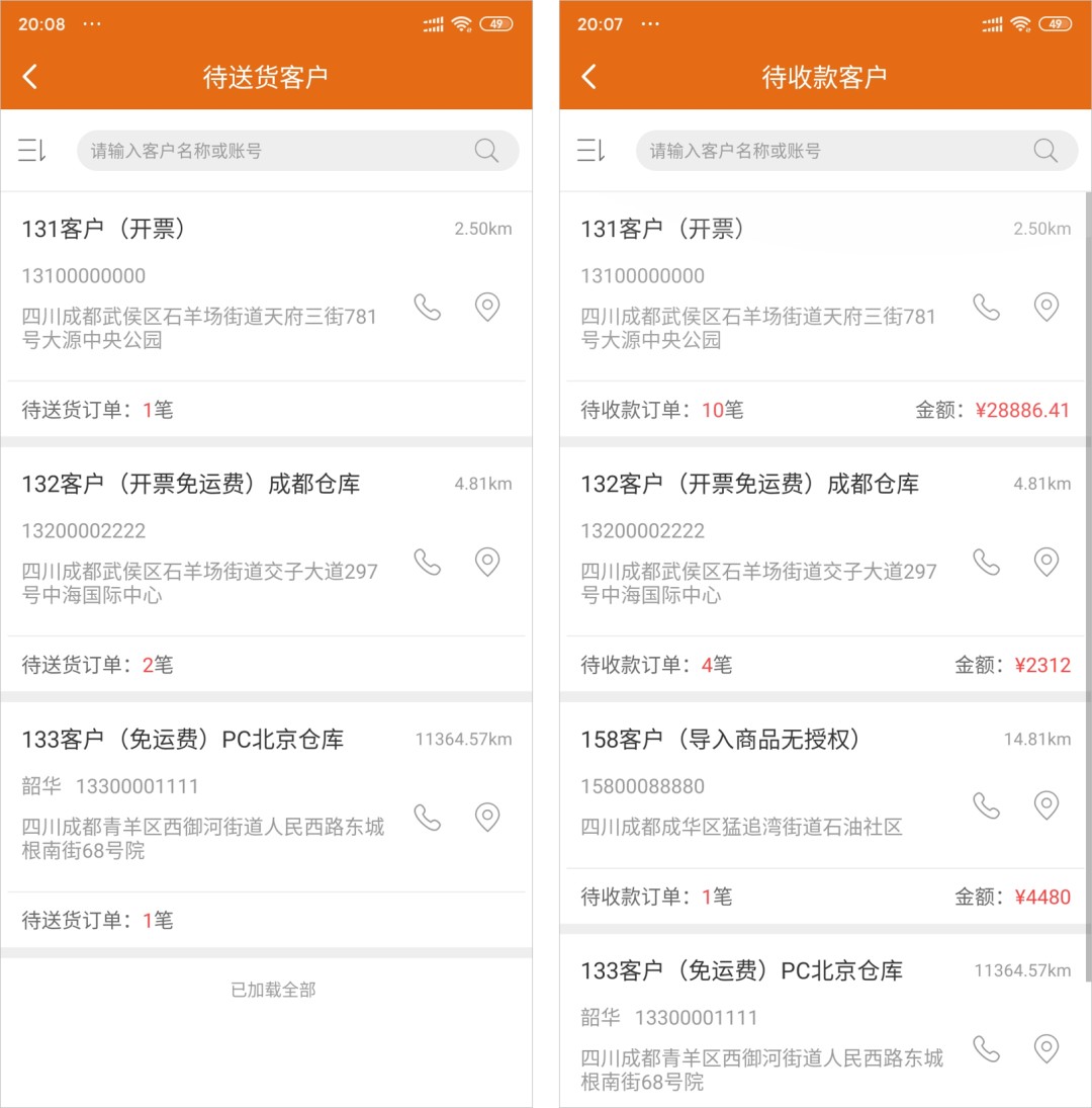 業(yè)務(wù)員送貨及收款列表頁優(yōu)化后,可以更直觀了解每個(gè)客戶需要送貨及收款的情況。