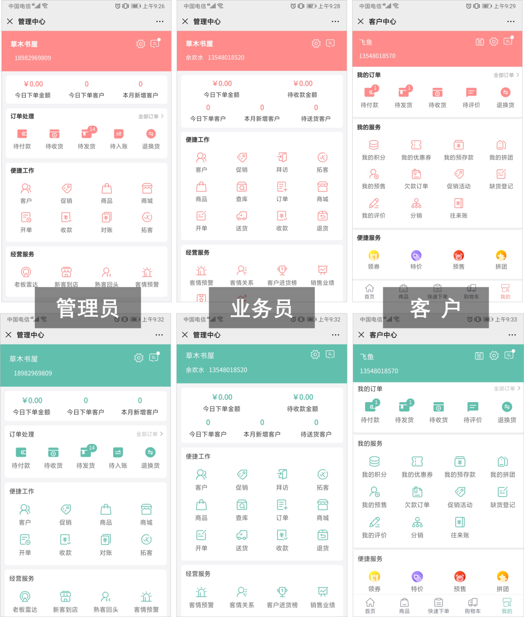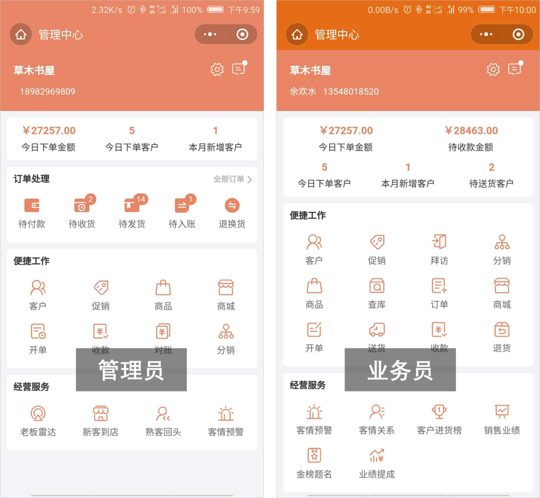 du立小程序版,除了以前的訂貨端,現(xiàn)在管li員、業(yè)務(wù)員也可以使用小程序來進(jìn)行業(yè)務(wù)管理跟進(jìn)了。