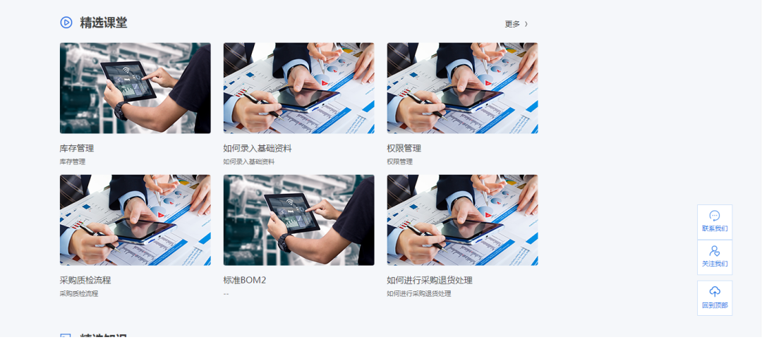 管家婆Club搭建了管家婆財/工貿全系列產品知識體系,內容形式上包括問答、文章及財貿課堂,根據(jù)不同維度配置成知識專題,以及財貿課堂: