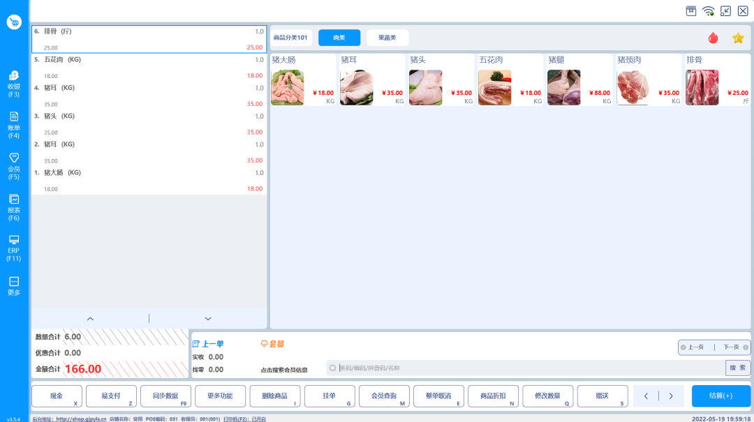 門店空間小,豬肉需稱重和收銀,硬件使用PC一體秤,稱重收銀一體化。