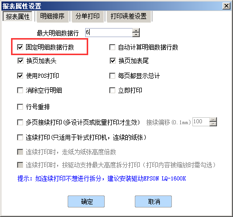 圖片中所示的最大明細(xì)行具體錄入多少,需要根據(jù)客戶實際的紙張大小來決定。通過判斷一張大概能打印多少數(shù)據(jù)去調(diào)整到最佳的行數(shù)即可。