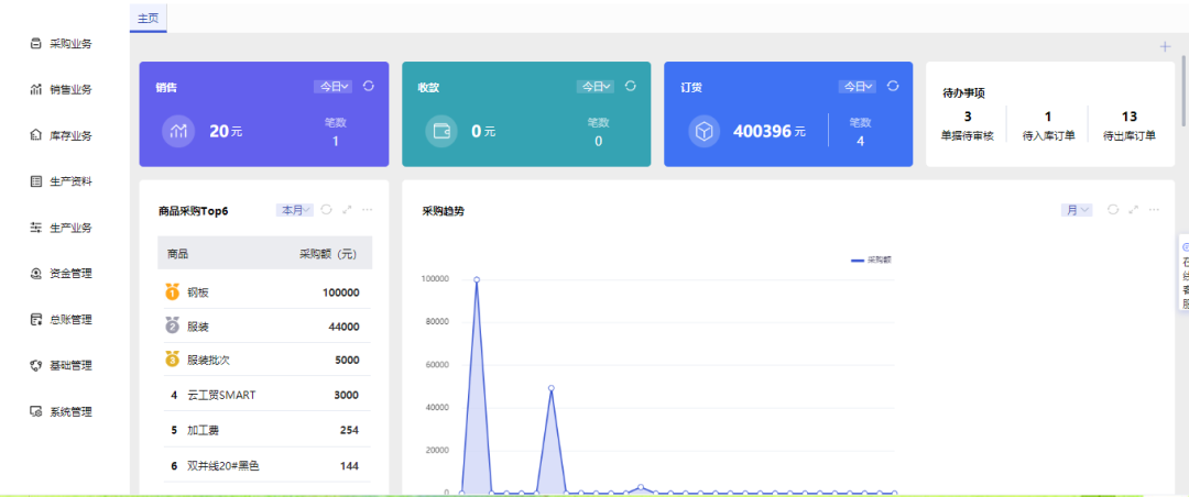 而對于小微型的生產加工企業(yè)來說,除了在進銷存+財務方面的有序管理,更需要把生產環(huán)節(jié)的改良優(yōu)化納入轉型體系。一個集生產+供應鏈+財務管理于一體化的低門檻、小投入的數(shù)字化管理工具顯得尤為重要。
