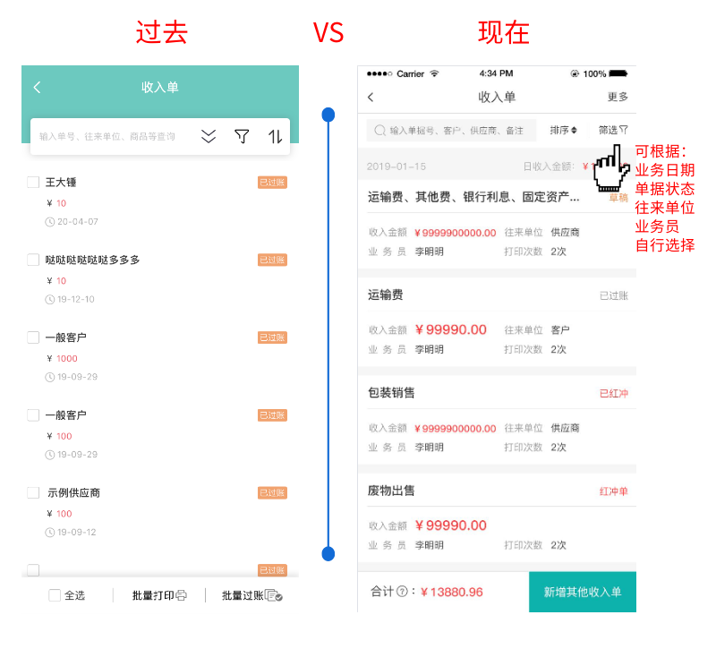 因收/付款單據展示形式相似,所以本次展示以“收款單”為例