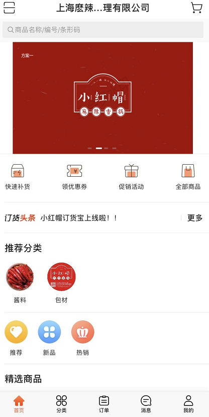 億楊餐飲訂貨寶營銷訂貨頁面示意